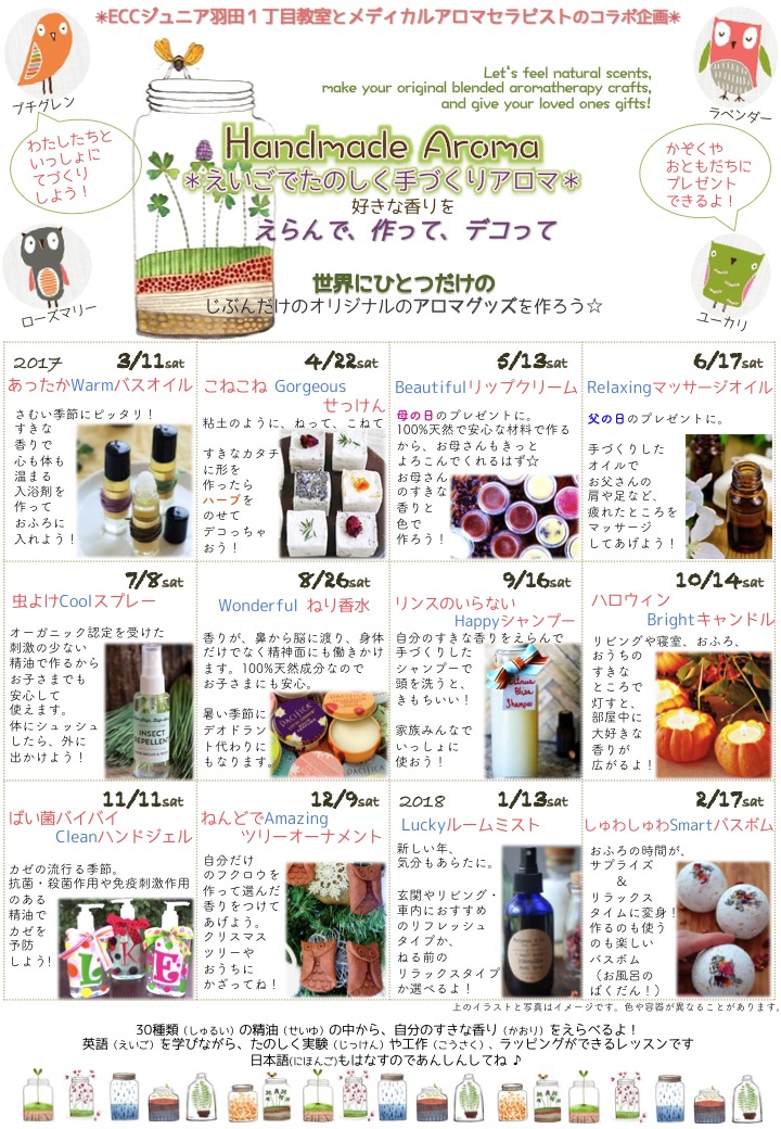 EU&ベルギーでオーガニック認定を受けたプラナロム社の、お子さまにも安心・安全な精油30種の中から、お子さまご自身で好きな香りを選んで、楽しく実験や工作、ラッピングができる内容です。