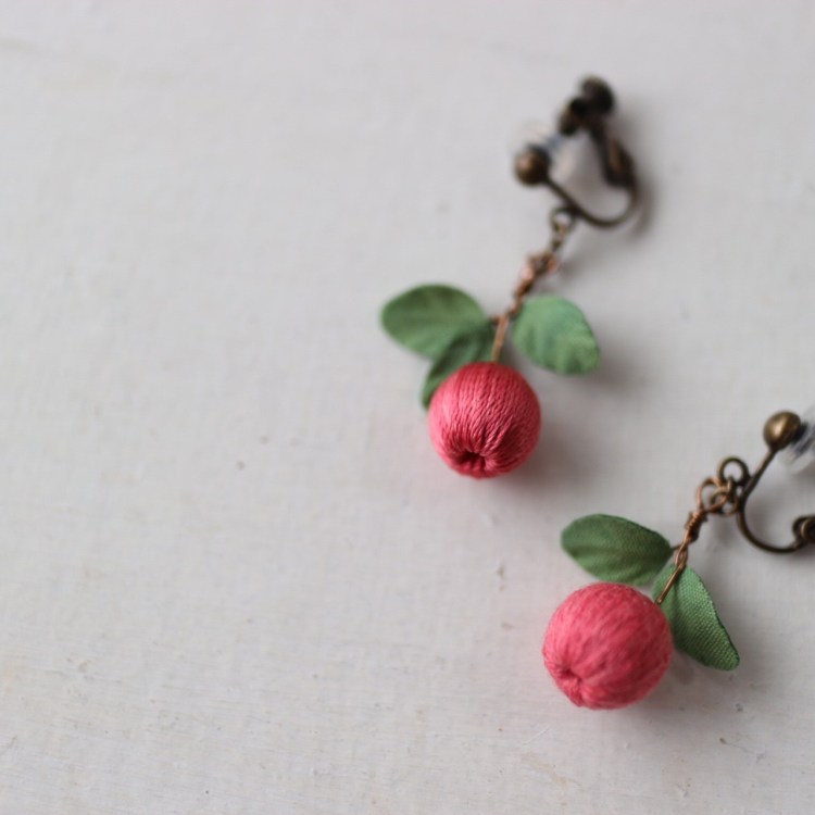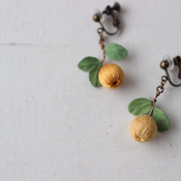 葉っぱは、藍とウコンの重ね染め、実は蘇芳染め。