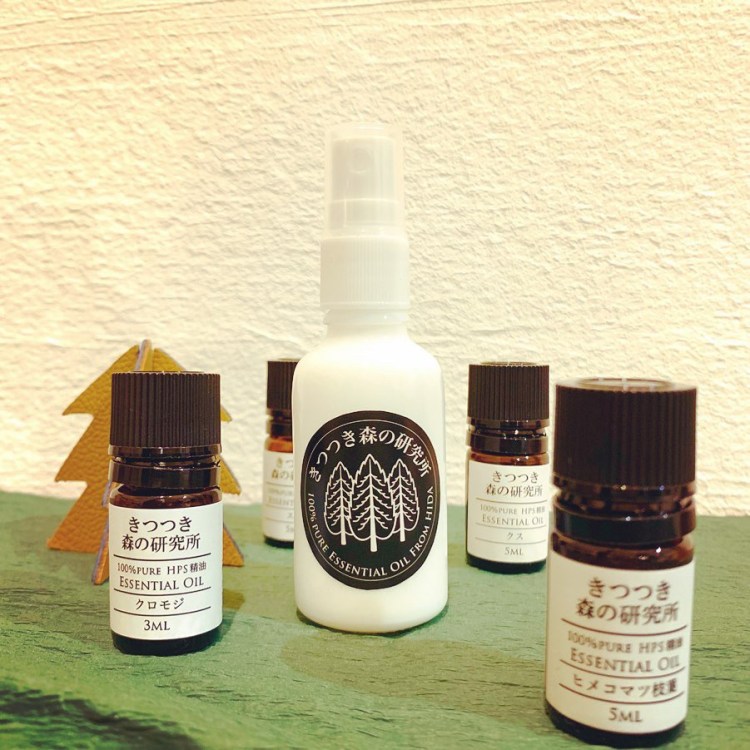 飛騨高山の老舗家具メーカー・飛騨産業様の家具製造過程で出る端材を使って抽出された、天然木の精油たち。
