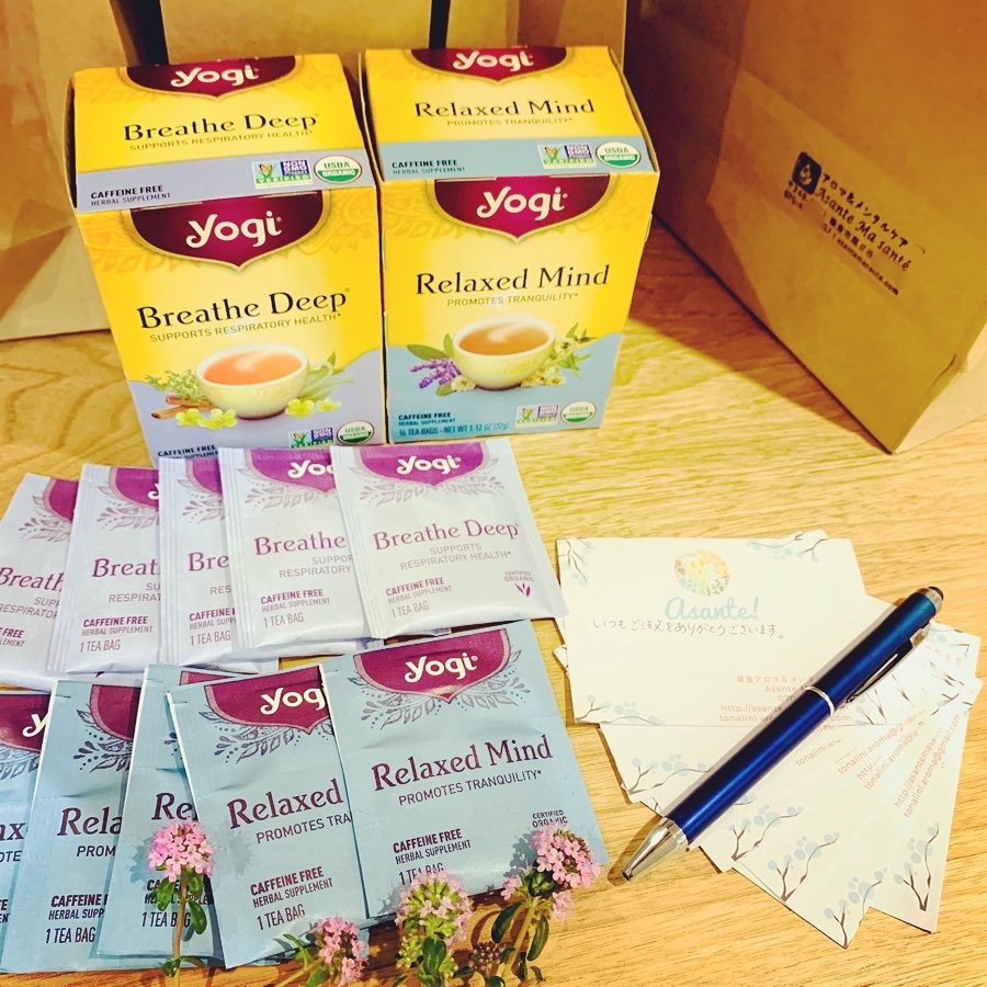 今週は確定申告もあり激務だったため、発送をお待ちくださっていた方々に、気持ちばかりの、今のフィーリングでチョイスしたヨギティーを添えて。
