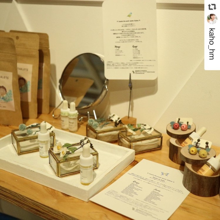 このアクセサリーは、草木染め作家 @kaho_hm 夏帆さんからご依頼いただき、和の香りを基調としたブレンド2種を担当させて頂きました。
