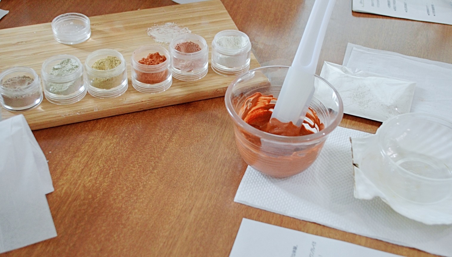 クレイミネラルファンデーション作りのワークショップです。