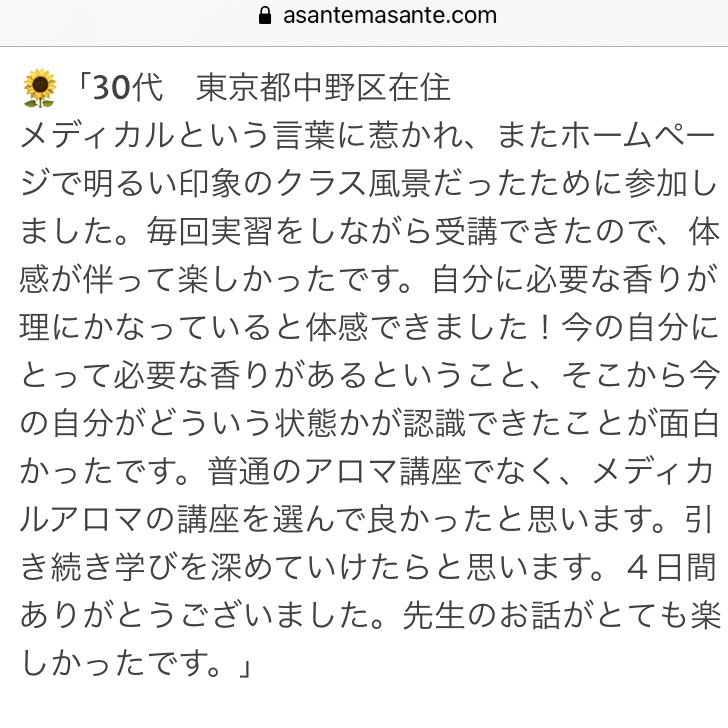 <Asante Ma santéオリジナル・メディカルアロマ基礎講座>
