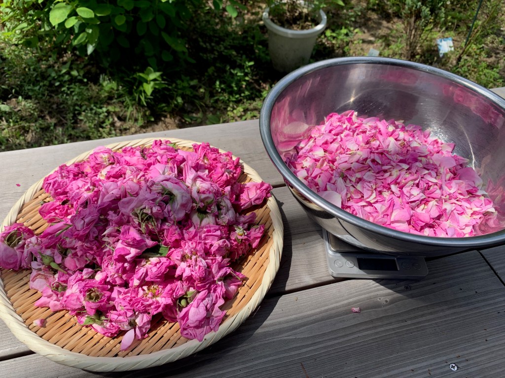今朝は2時間キッチンに入り浸り、昨日自分の手で丁寧に収穫したばかりのダマスクローズで