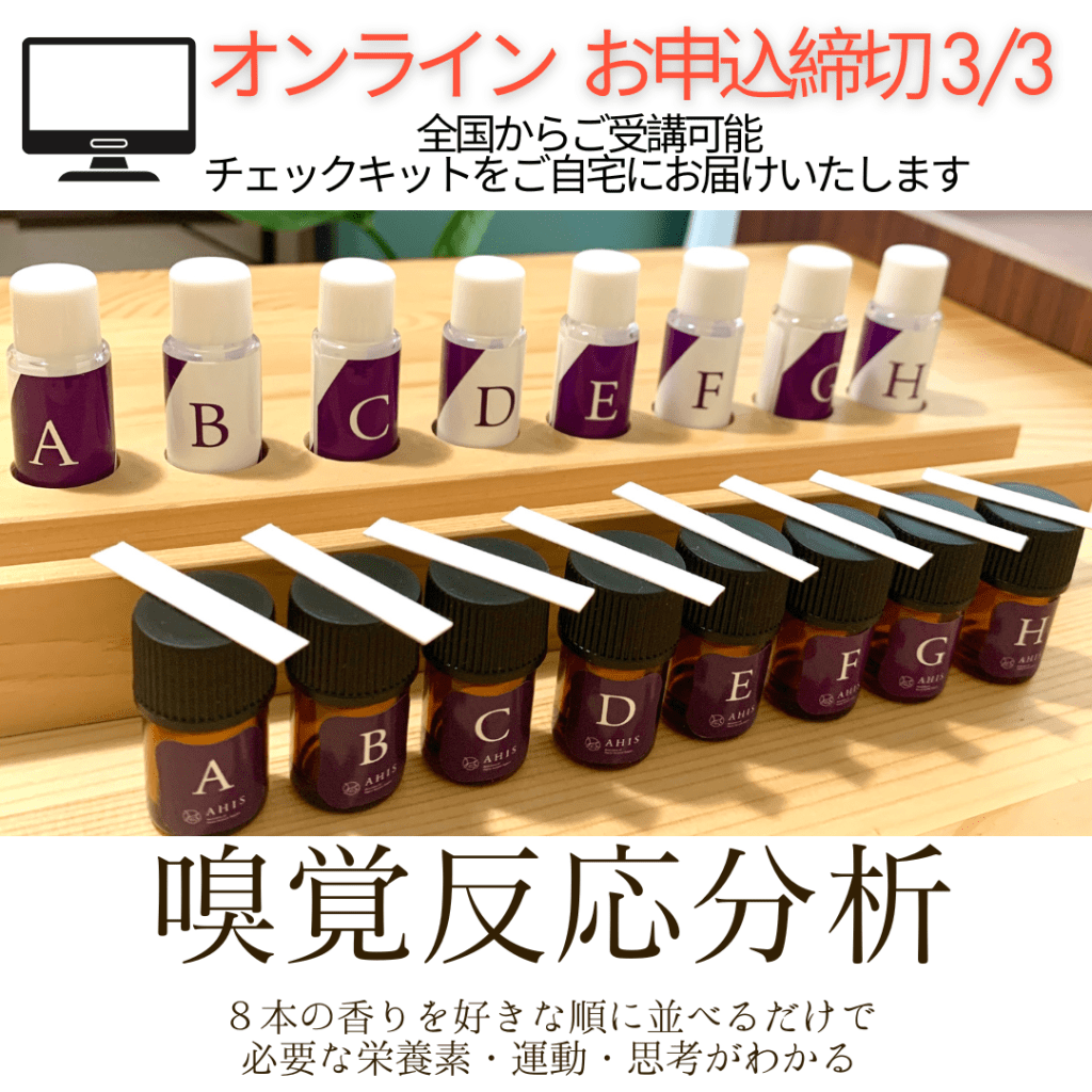 ただ、香りを嗅いで並べるだけという簡単な作業をするだけで、今のカラダの不調や性格などが分かり、ご自身に必要な「栄養素」「運動」「思考」「精油」がビジュアル化されるツールです。自分だけでなく、家族の健康管理にも役立てることができます。まずはチェックを受けてみませんか?(2回目以降は、対面またはオンラインで受けていただけます)