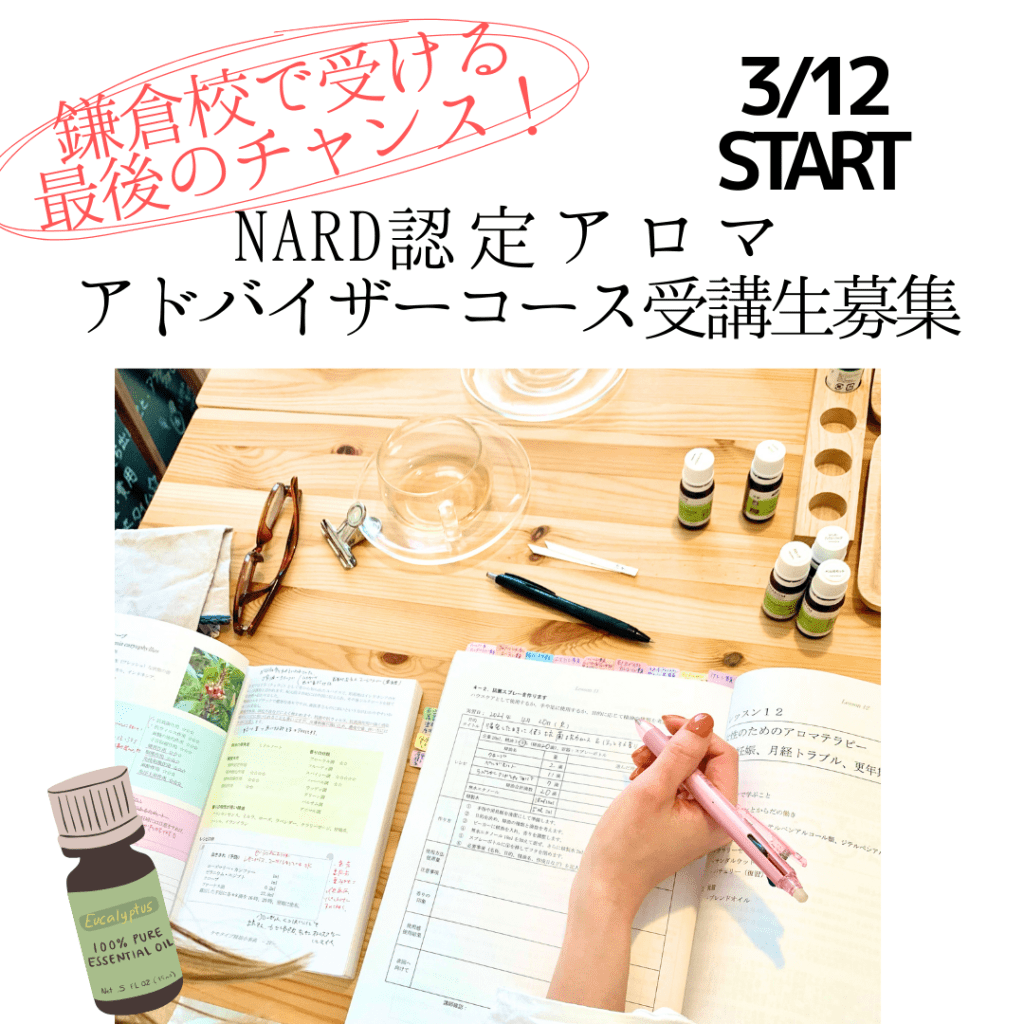 誠に勝手ながら、鎌倉で開催するNARD認定アロマアドバイザーコースは