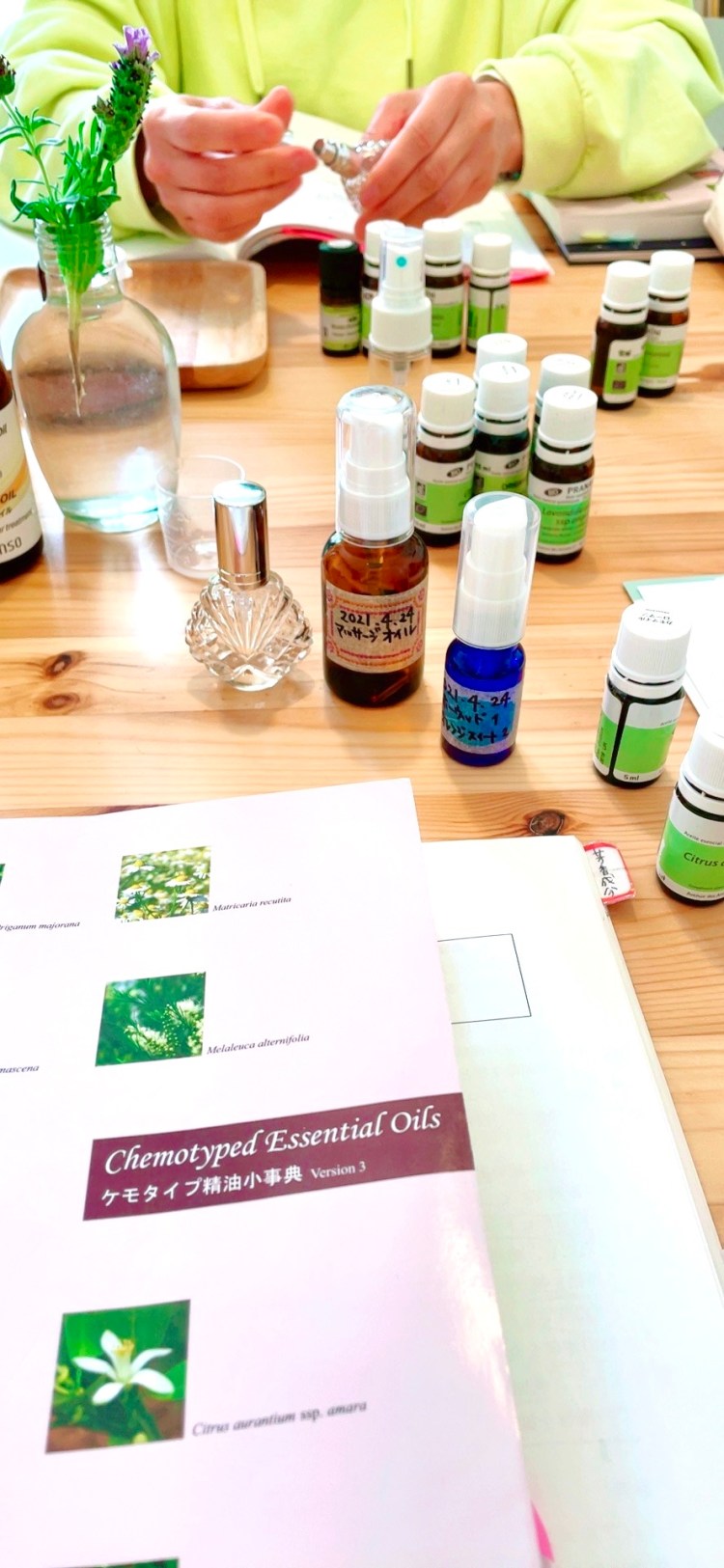 どの葉も、精油で嗅いでいる香りと似た香りがして、とてもいい匂い。思わず鼻先に集中して深呼吸してしまう私。