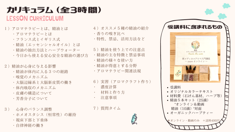 ✅3時間かけて丁寧にお伝えするので、メディカルアロマのいろはを納得して学べ、翌日から活用できます!
