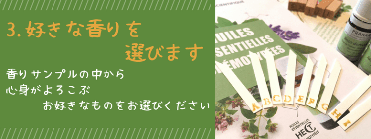 郵送で届いた香りサンプルの香りを嗅ぎ比べてもらい、心身が喜ぶ、好きな香りを選んだら、その結果を、インターネット上のフォームで簡単に入力、送信していただきます。